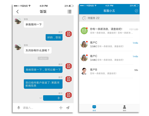 Customer-agent interface and multi-chat management on Dragon Trail’s KanKan Talk chat platform
