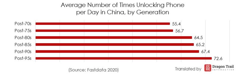 As of May 2020, post-95s make up 19.3% of Chinese internet users, and are the most active generation of internet users. Post-95s’ screen time is higher than any other generation, at 5.54 hours per day. This contrasts to 4.77 hours per day for those born between 1980-1984 (post-80s), 5.26 hours per day for post-85s (1985-1989), and 5.43 hours per day for post-90s (1990-1994).