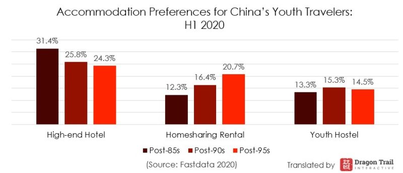 Young travelers are helping to drive the recovery of domestic tourism in China. The report includes information on accommodation preferences among different segments of the youth travel market in China during the first half of 2020. Of course, some of these preferences are likely influenced by buying power (the post-85 generation has been in the workforce for the past decade, whereas not all post-95s will have started working yet, for example). The influence of COVID-19 on accommodation preferences is likely to have both long-term and short-term impacts on traveler choices, but it’s too early to tell which will be long-lasting or temporary.