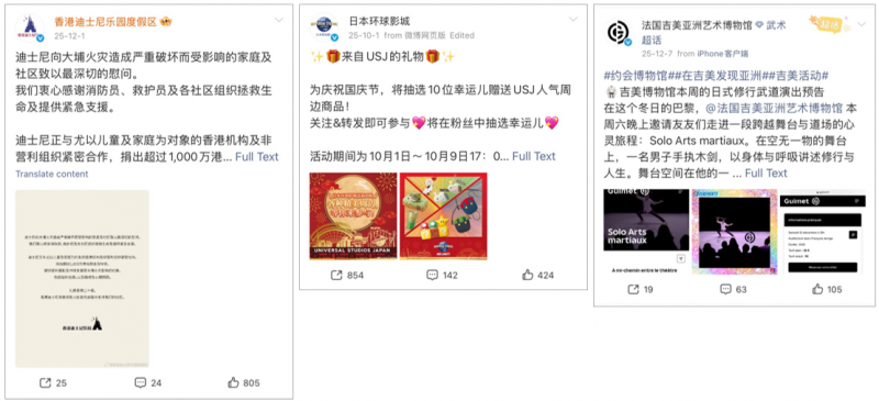 Hong Kong Disneyland received 57% of all engagements in the attractions and museums category in 2025. Its top posts covered two very different topics. Two videos from Q3 celebrated the theme park’s 20th anniversary, with actor Henry Lau. Then in Q4, Hong Kong Disneyland responded to Hong Kong’s Wang Fuk Court fire, donating 10 million HK dollars to support victims of the fire and later canceling a scheduled party event out of respect for the tragedy. Not just a fun attraction, Hong Kong Disneyland demonstrated its sensitivity, care for, and commitment to Hong Kong as a community, with high levels of support on Weibo.