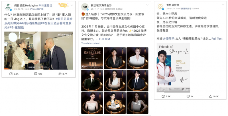 (Left to right) Cecilia Yip for Holiday Inn, Marina Bay Sands gives away tickets to the Weibo Gala 2025, and Pan Zhanle becomes a Friend of Shangri-La