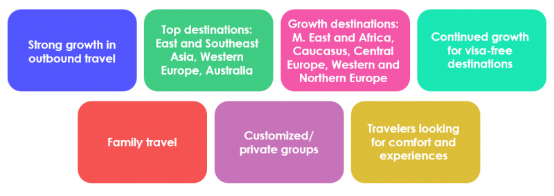 In terms of high-growth destinations, these are quite numerous and include some surprises – for example, more than one travel agency reported particularly high growth for Zambia. Both the Caucasus region and Central Asia continue to stand out, in no small part thanks to visa-free travel. Growth to Europe also seems generally strong, with Norway in particular showing up on a few travel agencies’ lists.