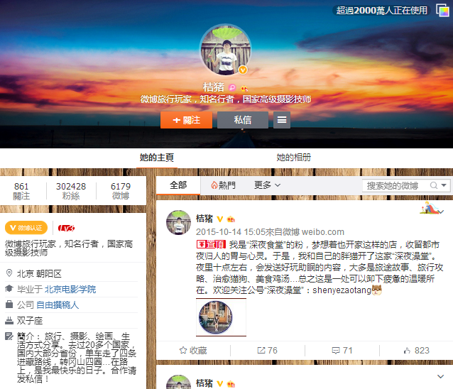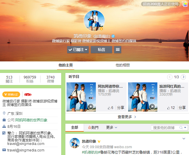 However, many of today’s most influential and successful KOLs fell into and developed their online careers organically out of passion for their subject. Ju Zhu started out in 2004 as a freelance travel magazine writer. She set up blog accounts to share her articles, and through this became a full-time travel blogger. Luxury travel KOL Mei Li Shi Zu used to work for one of the largest internet companies in Beijing, but eventually left her job to blog full-time. She now focuses on luxury hotels and fine dining restaurants, with 580,000 followers on Weibo and an average of 15,000 views per post on WeChat. KDimage is a gay couple with approximately 970,000 followers on Weibo and an average of 30,000 views per post on WeChat. Kai and De’s social media following exploded while they were on a career break in New Zealand in 2010, resulting in the New Zealand Tourism Board and local media engaging them for a campaign. They became full-time travel bloggers in 2013, offering photos, articles and videos, as well as LGBT-focused content.