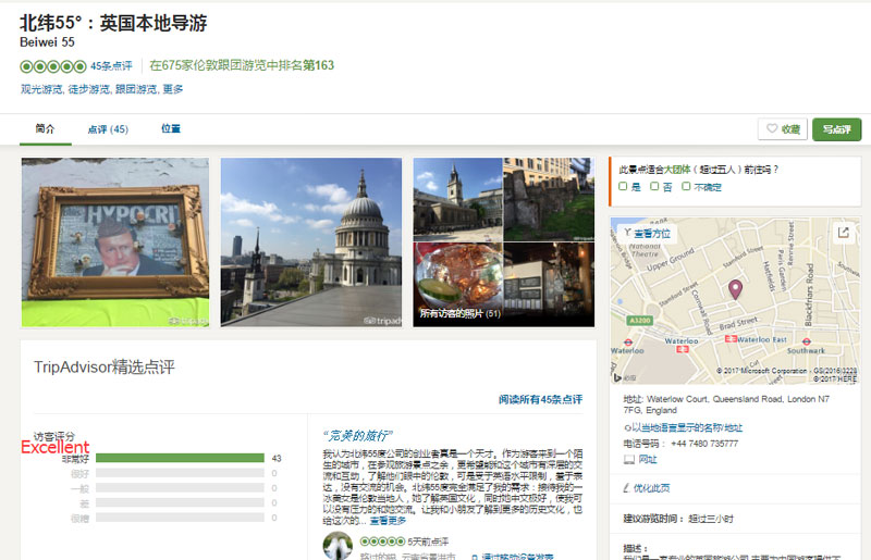 Many of those who have reviewed Beiwei 55° on Trip Advisor mention that it is more relaxing for them to go on a Chinese-language rather than an English-language tour, given by a native guide. “Site-seeing as a tourist in a new and unknown city, I wanted to communicate with people who deeply understand the city, to see London through their eyes, but as my English is limited and I’m shy about expressing myself in it, I didn’t have any opportunities to interact [with locals]. Beiwei 55° totally fulfilled my needs. Eve is a local Londoner, she understands British culture, but at the same time, her Chinese is so good, I could communicate with her without feeling any pressure,” wrote one tourist from Yunnan Province. “It was so relaxing not worrying about understanding different accents,” wrote another client from Suzhou.