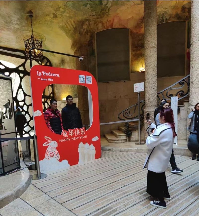 Casa Milá, also known as La Pedrera, is a Gaudi-designed building and UNESCO World Heritage site in Barcelona, Spain. To provide an interactive Chinese New Year activity for visitors and encourage offline-to-online word of mouth marketing, Casa Milá commissioned a bespoke CNY photo frame.
