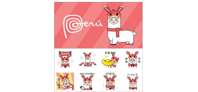 Peru launched eight new WeChat stickers for Chinese New Year, featuring their alpaca mascot dressed up for the Year of the Rabbit. The WeChat stickers were introduced and could be saved from an article that also included an article and video introducing Peruvian cuisine, and an interactive CNY giveaway.