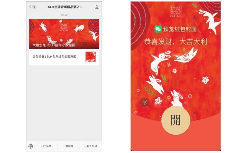 Small Luxury Hotels of the World’s WeChat red envelope for 2023 features a whimsical rabbit design.