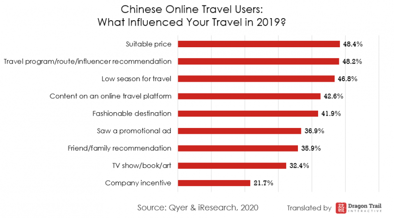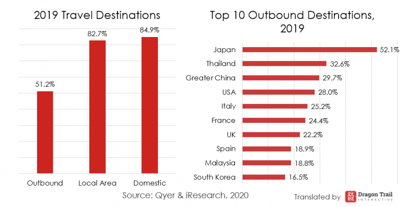Most of the report does not often separate out outbound from domestic travel, but it did find that just over half of Chinese online travel users went on outbound trips in 2019. The most popular destinations were in Asia, Europe, and North America.