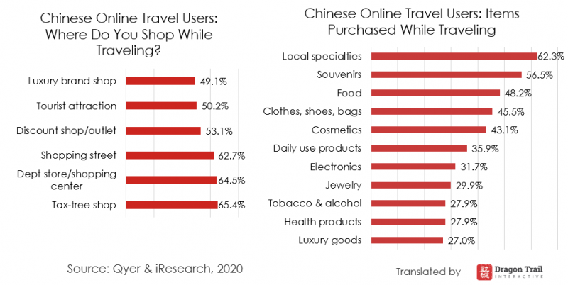 The report’s findings on travel shopping were also very similar to Chinese consumer surveys that have been published in the past, confirming this information. This includes the popularity of souvenirs, local specialties, and food items as the most-purchased items when shopping.