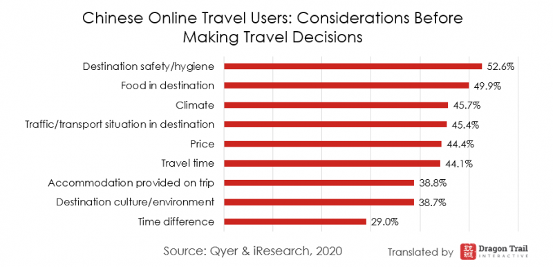 Previous consumer surveys for the Chinese market have often revealed that safety/hygiene, and food in the destination have the biggest impact on travel decisions. It will be interesting to see how the COVID-19 crisis affects these priorities and travel decisions in future surveys.