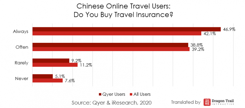 The survey found that even in 2019, the large majority of Chinese travelers either always or often bought travel insurance. The post-COVID-19 world is likely to see an even greater percentage of consumers who purchase travel insurance.