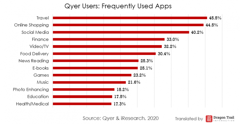More than 40% of Chinese online travel users traveled at least five times in 2019, and Qyer users were even more likely to make more trips. The average number of trips in 2019 for all users was 4.38, and for Qyer users it was 4.63.