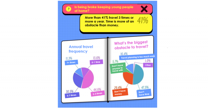 How much are budgetary constraints holding back young Chinese from traveling? 29.4% said not having enough money was the biggest obstacle to travel, but lack of time was a bigger obstacle, chosen by 47.5%.