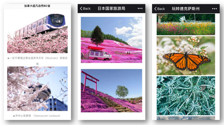 “Chinese are looking for the beauty of the countryside when they travel,” says founder and CEO of Chinese travel media Tripvivid, Liu Zhaohui, and this is certainly supported by Dragon Trail’s data on the top WeChat articles from national and regional tourism boards over the past two years. Images of pristine, empty, natural landscapes were the keys to success for countries like Canada and New Zealand in 2017, and posts about flowers have helped destinations from Japan to Edinburgh to Vancouver climb up the WeChat rankings in 2018. Read more about flower tourism for the Chinese travel market here.