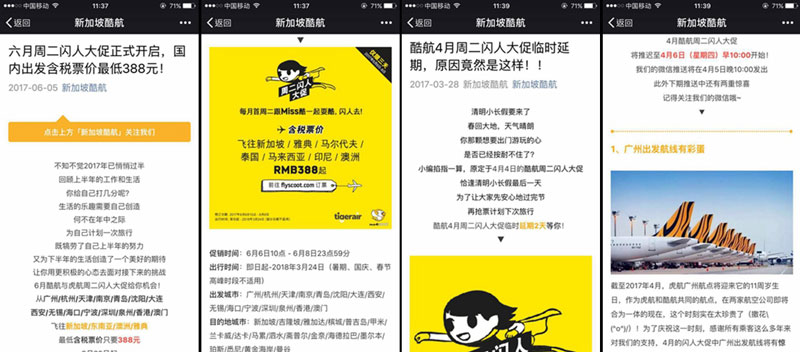 From the start, Scoot has marketed itself digitally. In addition to a traditional in-house sales team, Scoot has worked together with Chinese OTA platforms including Ctrip, Qunar and Fliggy (Alibaba’s travel platform “Feizhu” in Chinese, recently rebranded from “Alitrip”) to sell tickets, continuously growing its customer base. At the same time, Scoot has used its own website, app, WeChat and Weibo accounts to promote special offers. Lee explains that from 2016, the company launched a weekly deal every Tuesday, which has done a lot for the company’s sales and reputation, and won them loyal followers on social media. For the last two years, Scoot has worked together with Dragon Trail Interactive on its digital marketing strategy, scheduling content, analyzing its customer base, encouraging customers to share their positive travel experiences on social media and, in Lee’s words, working to promote Scoot’s “young, interesting and vivacious brand attitude.”
