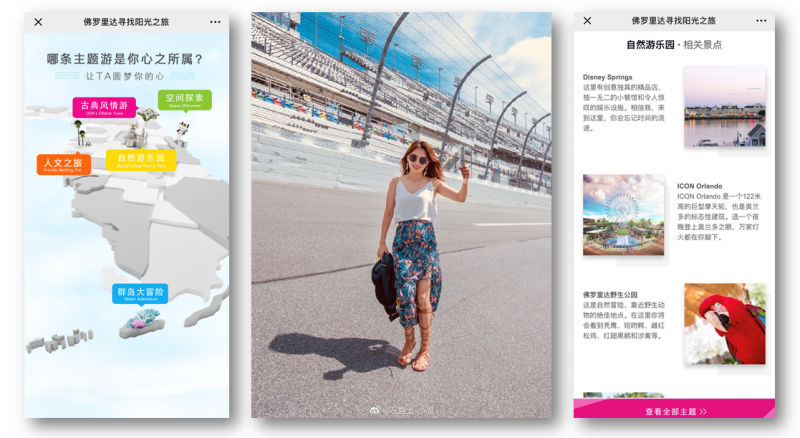 Last year, Visit Florida ran a KOL campaign to position Florida as the USA’s best road trip destination, sending five travel influencers around the state, in cars sponsored by Hertz. The influencers posted about their itineraries and their favorite attractions along the way on their own social media channels, and Dragon Trail also helped Visit Florida to create a mini site (scan the QR code in WeChat to enter) with guides to different parts of Florida, including video content, photos, and descriptions of recommended venues. In the end, the campaign received over 57 million views of the KOLs’ content and a big boost to consumer interest in self-driving tourism in Florida.