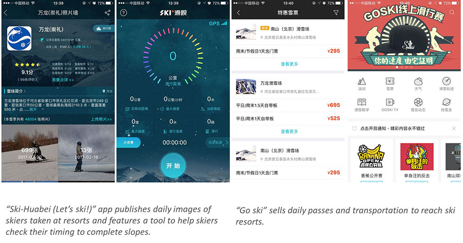 I’ve also used the “Ski-Huabei (Let’s ski!)” app. This app is popular because you can track the speed and time of your downhills and you can immediately see how you are ranking in comparison to other people. Skiers also like checking the app’s photo gallery to see if Ski-Huabei has taken their pictures on the trails. Generally speaking both apps are mainly focused on the domestic market, but I have seen some information about Japan on “Go Ski”.