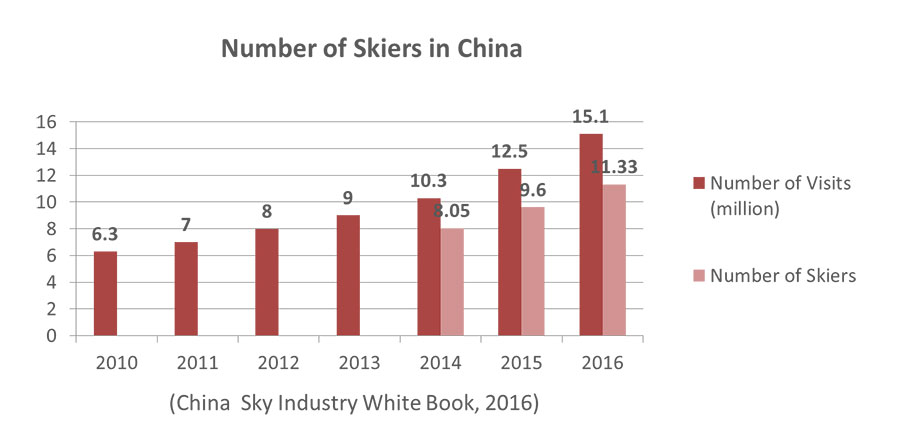 The total number of skiers in China is still in its infancy with only 0.4% of the population practicing the winter sport. In comparison, 25% of Northern Europeans actively ski. But with many things in China, the pace of the sport’s uptake has been quick.