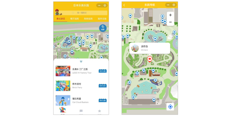 In 2018, Legoland Japan launched a WeChat mini-program featuring an interactive map, showing all of the attractions/rides, F&B venues, shops, and service facilities – including toilets, ATMs, changing facilities and first aid. Location-based services allow visitors to use the mini-program to navigate the park while they are there, but the mini-program could also be accessed and used ahead of time to help plan a trip and take a virtual tour.