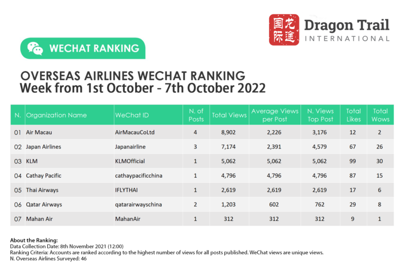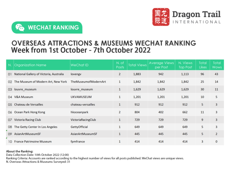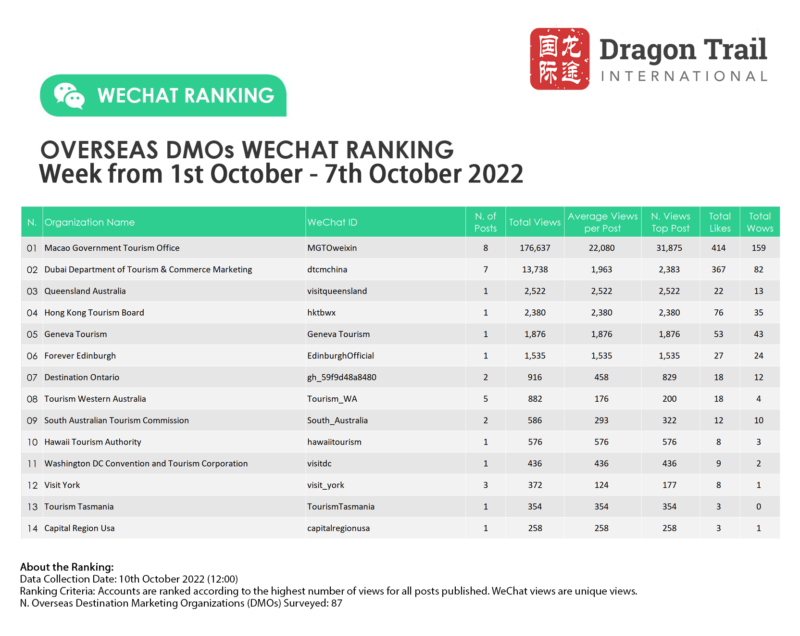 Ranking criteria: Accounts are ranked according to the highest number of views for all posts published. WeChat views are “unique views”.
