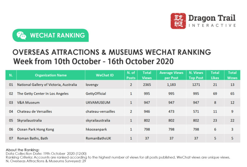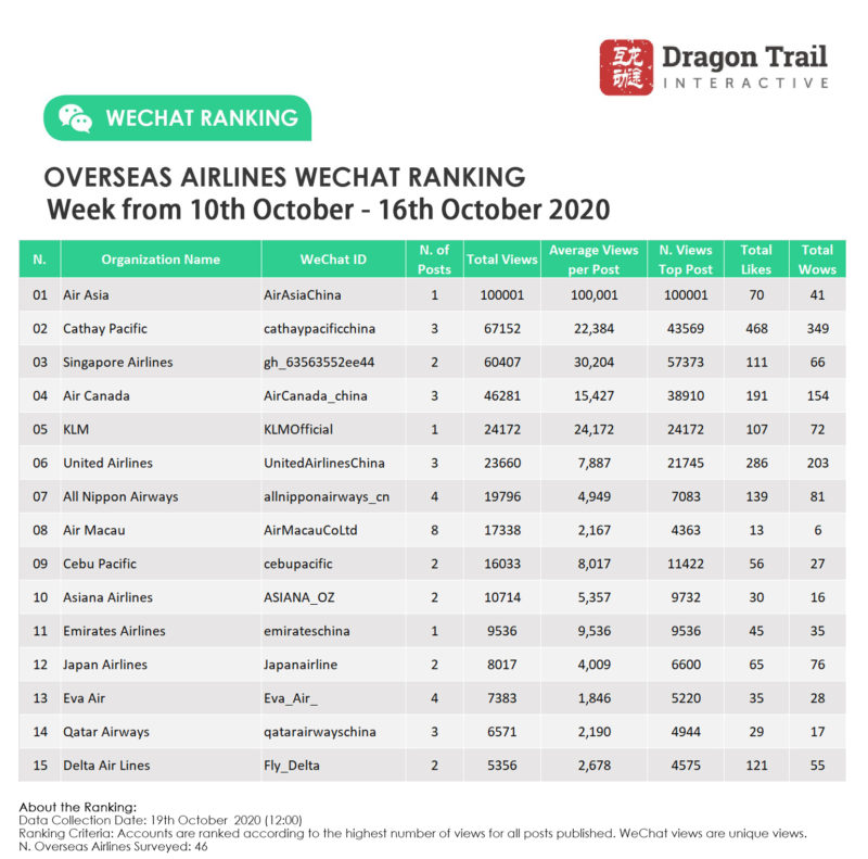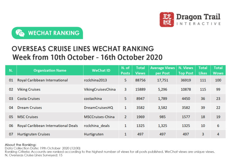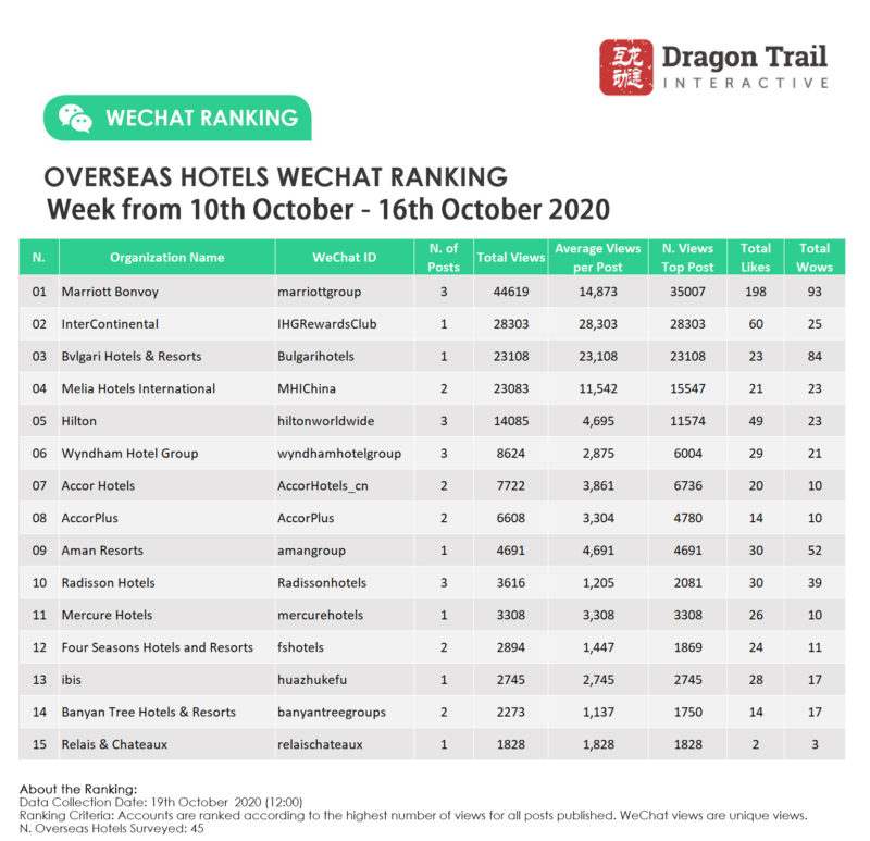 Ranking criteria: Accounts are ranked according to the highest number of views for all posts published. WeChat views are “unique views”.