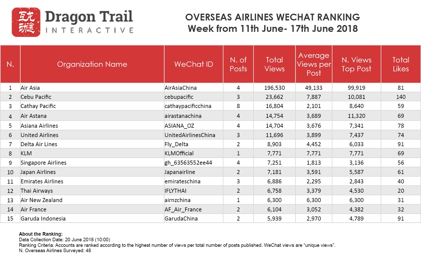 Ranking criteria: Accounts are ranked according to the highest number of views per total number of posts published. WeChat views are “unique views”.