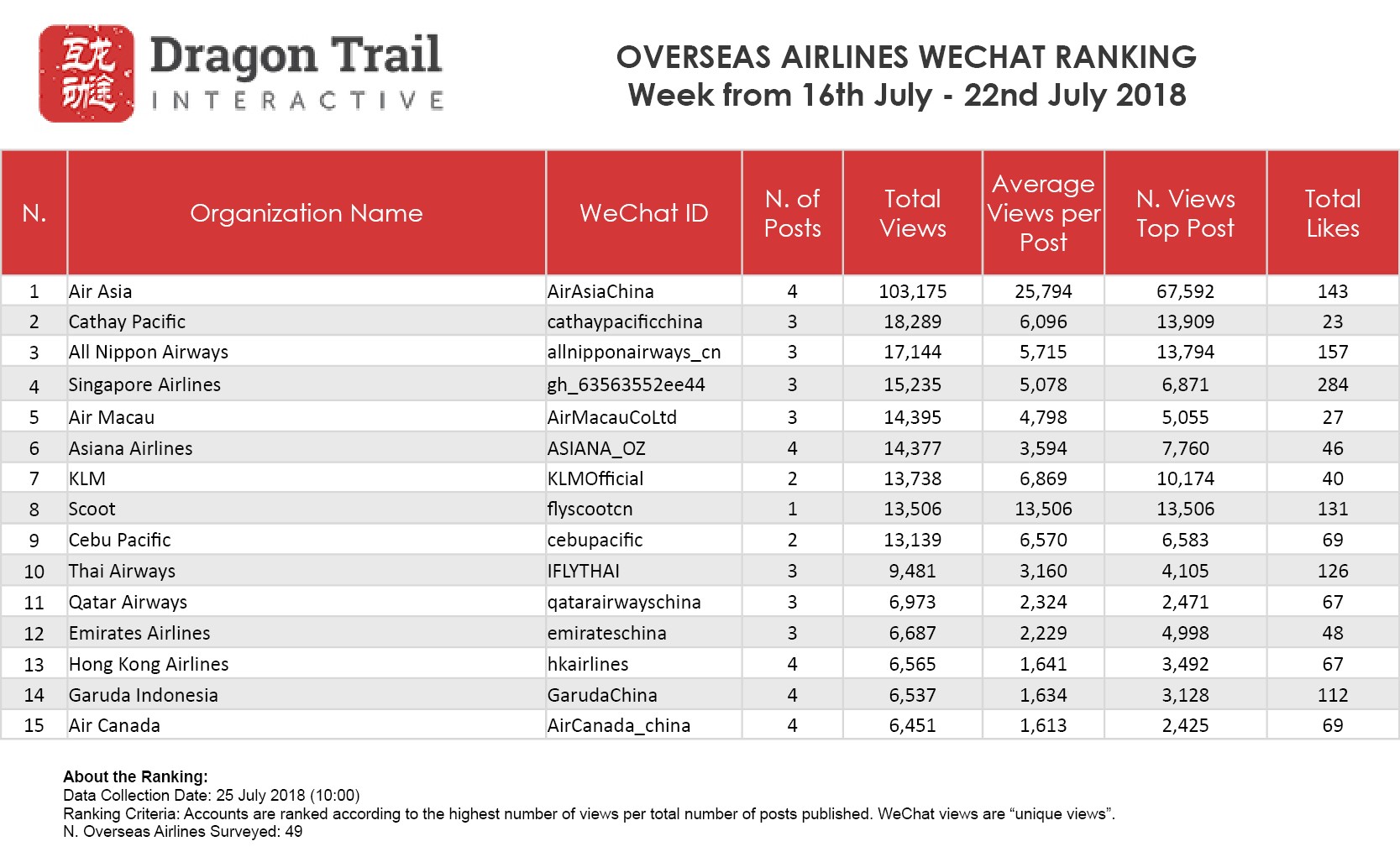 Ranking criteria: Accounts are ranked according to the highest number of views per total number of posts published. WeChat views are “unique views”.