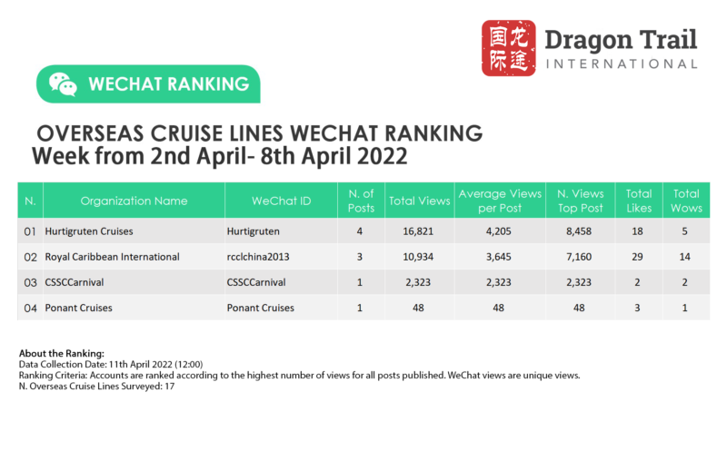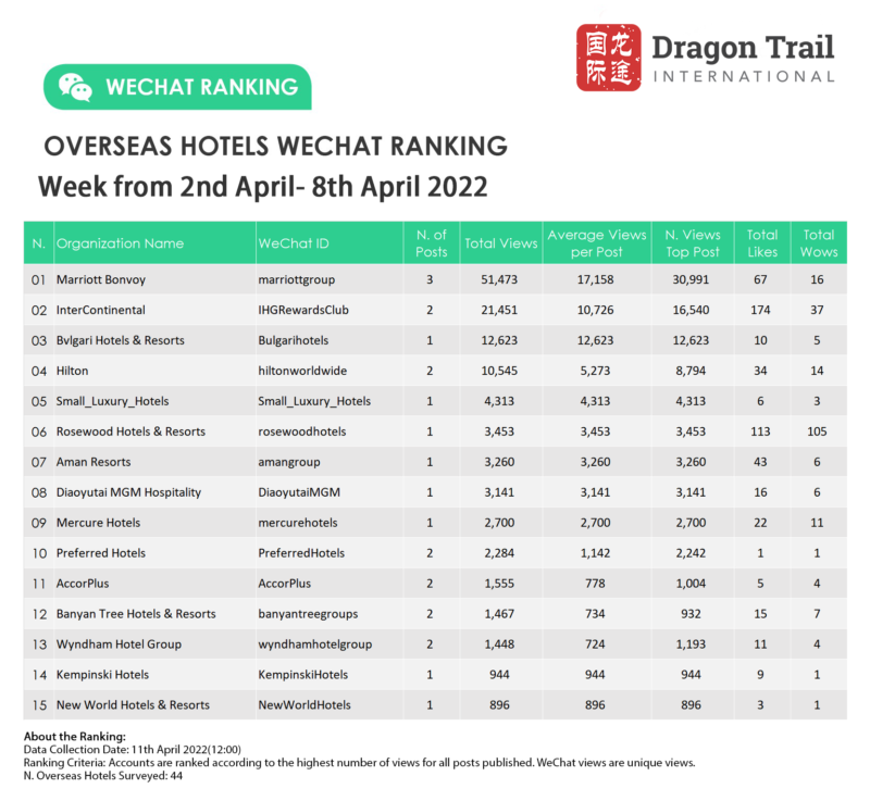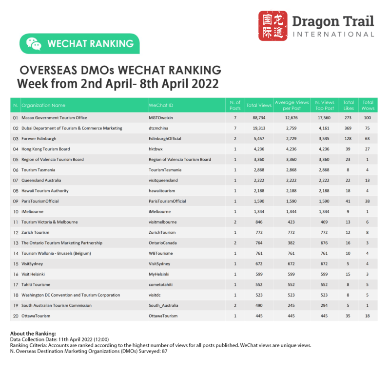 Ranking criteria: Accounts are ranked according to the highest number of views for all posts published. WeChat views are “unique views”.