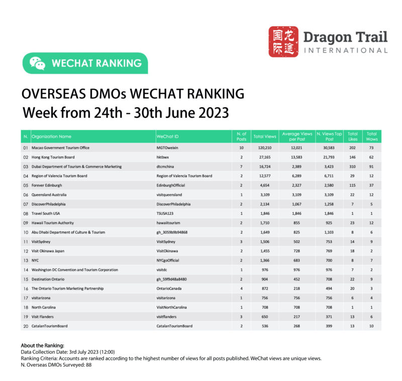 Ranking criteria: Accounts are ranked according to the highest number of views for all posts published. WeChat views are “unique views”.