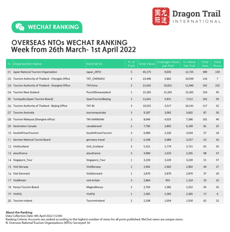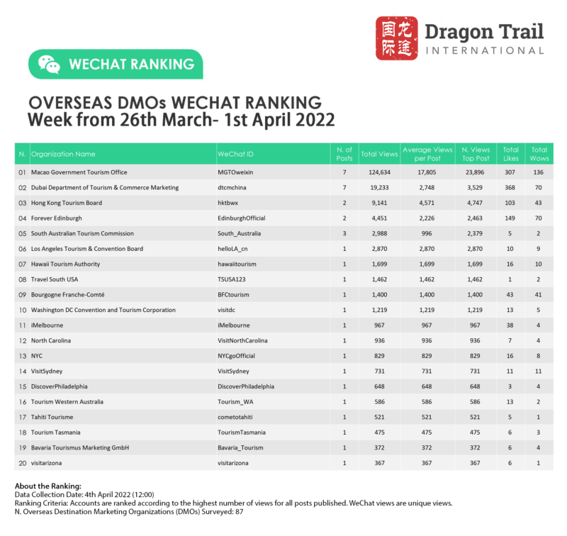 Ranking criteria: Accounts are ranked according to the highest number of views for all posts published. WeChat views are “unique views”.