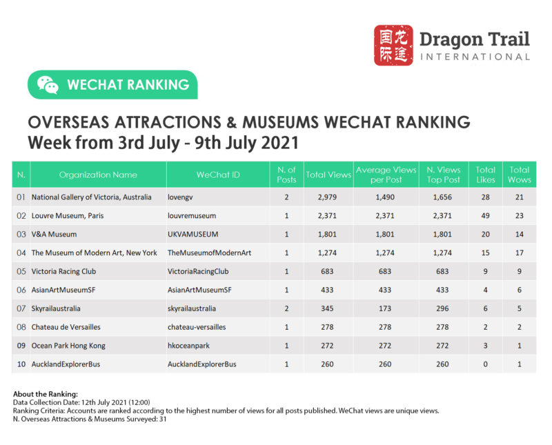 Ranking criteria: Accounts are ranked according to the highest number of views for all posts published. WeChat views are “unique views”.