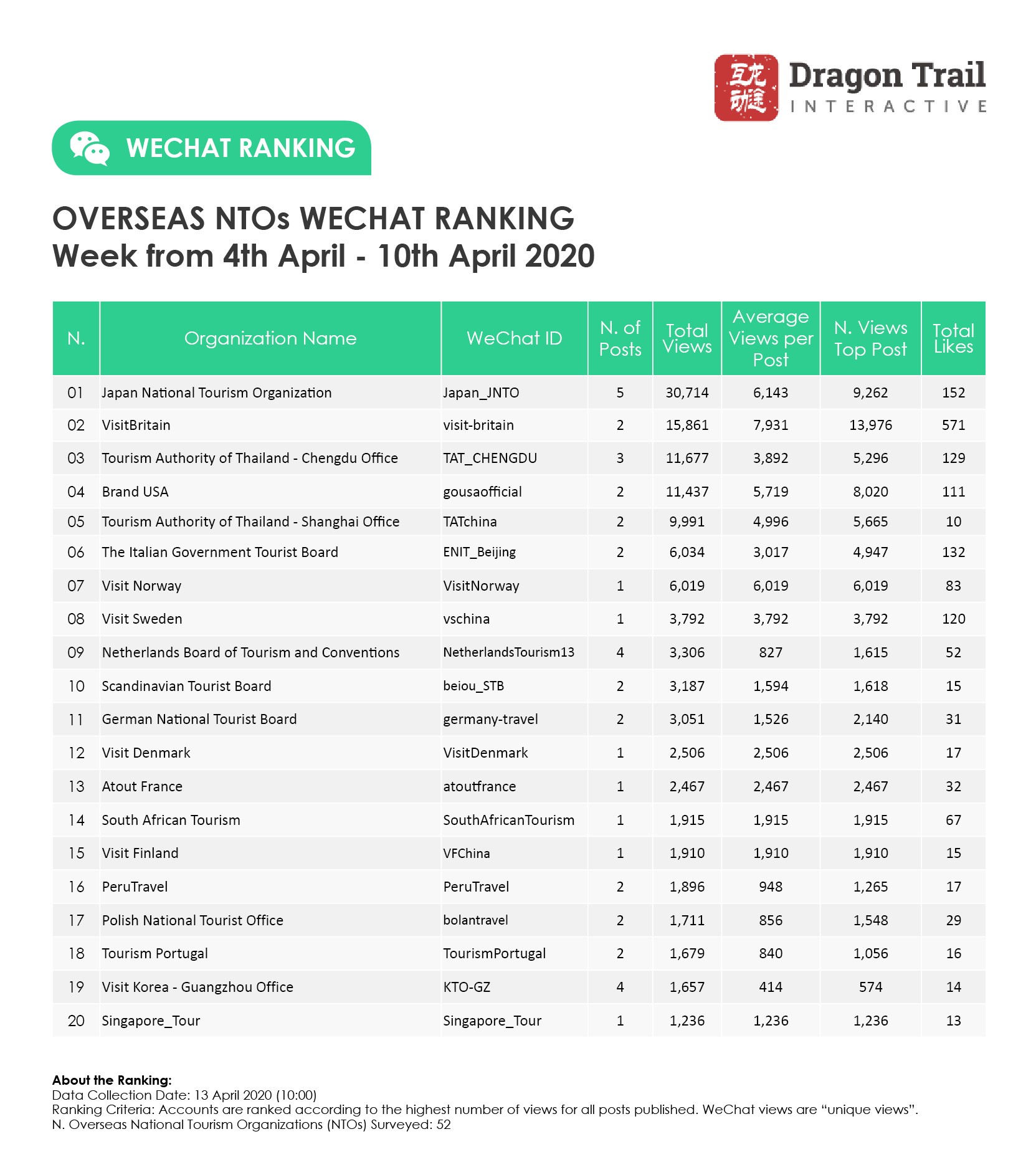 Ranking criteria: Accounts are ranked according to the highest number of views for all posts published. WeChat views are “unique views”.