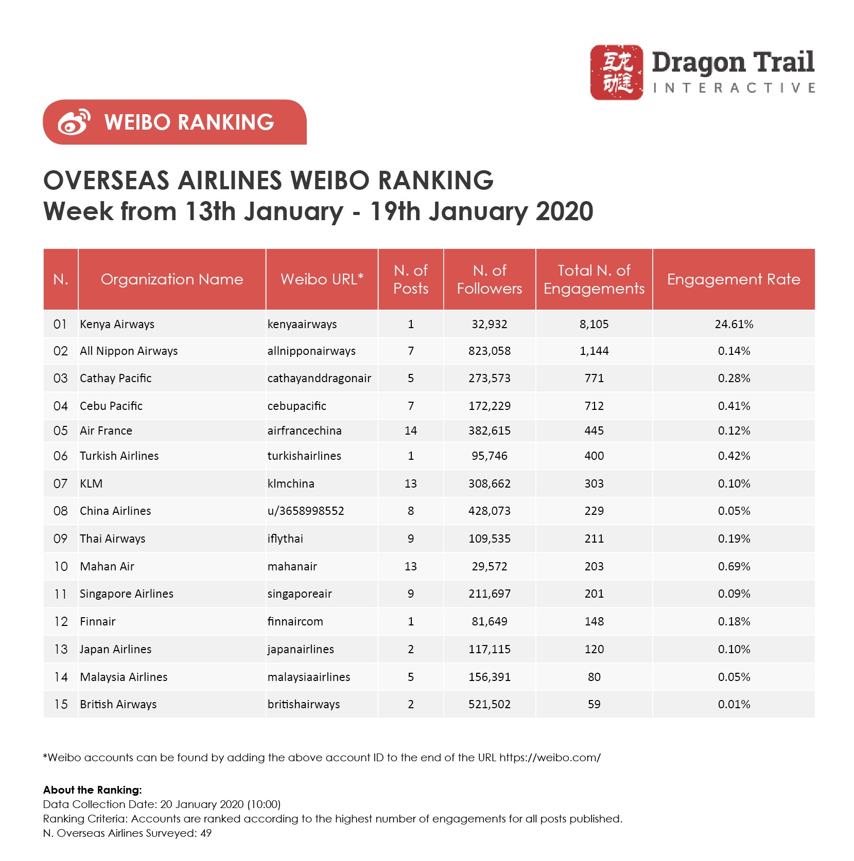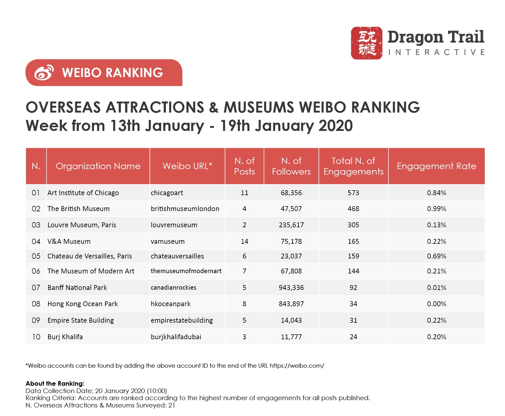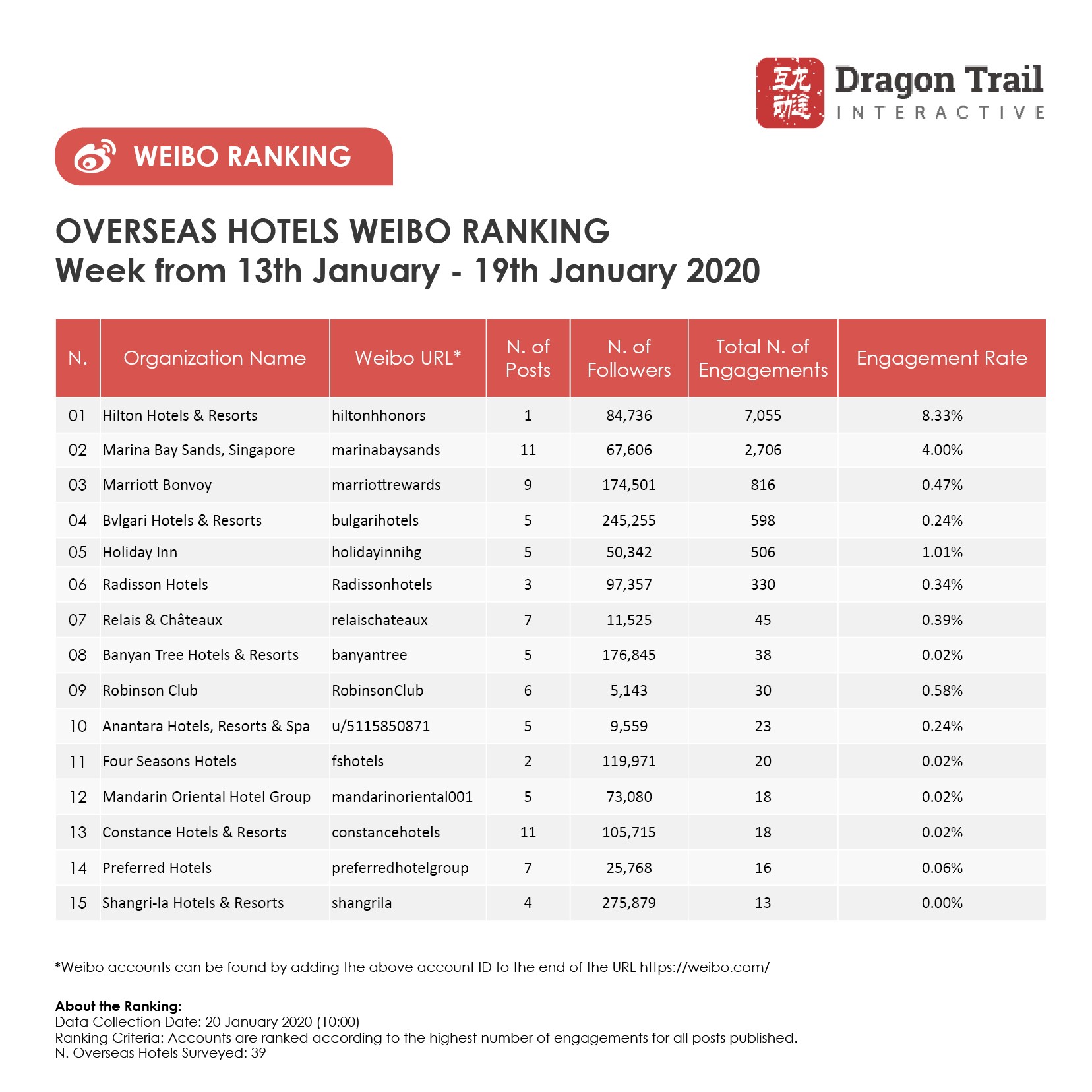 Ranking criteria: Accounts are ranked according to the highest number of engagements for all posts published.