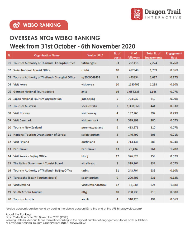 About the data: The data is jointly collected and compiled by Dragon Trail Interactive and Dingla, a B2B travel marketing platform assisting foreign organizations build long term travel trade relationships in China.