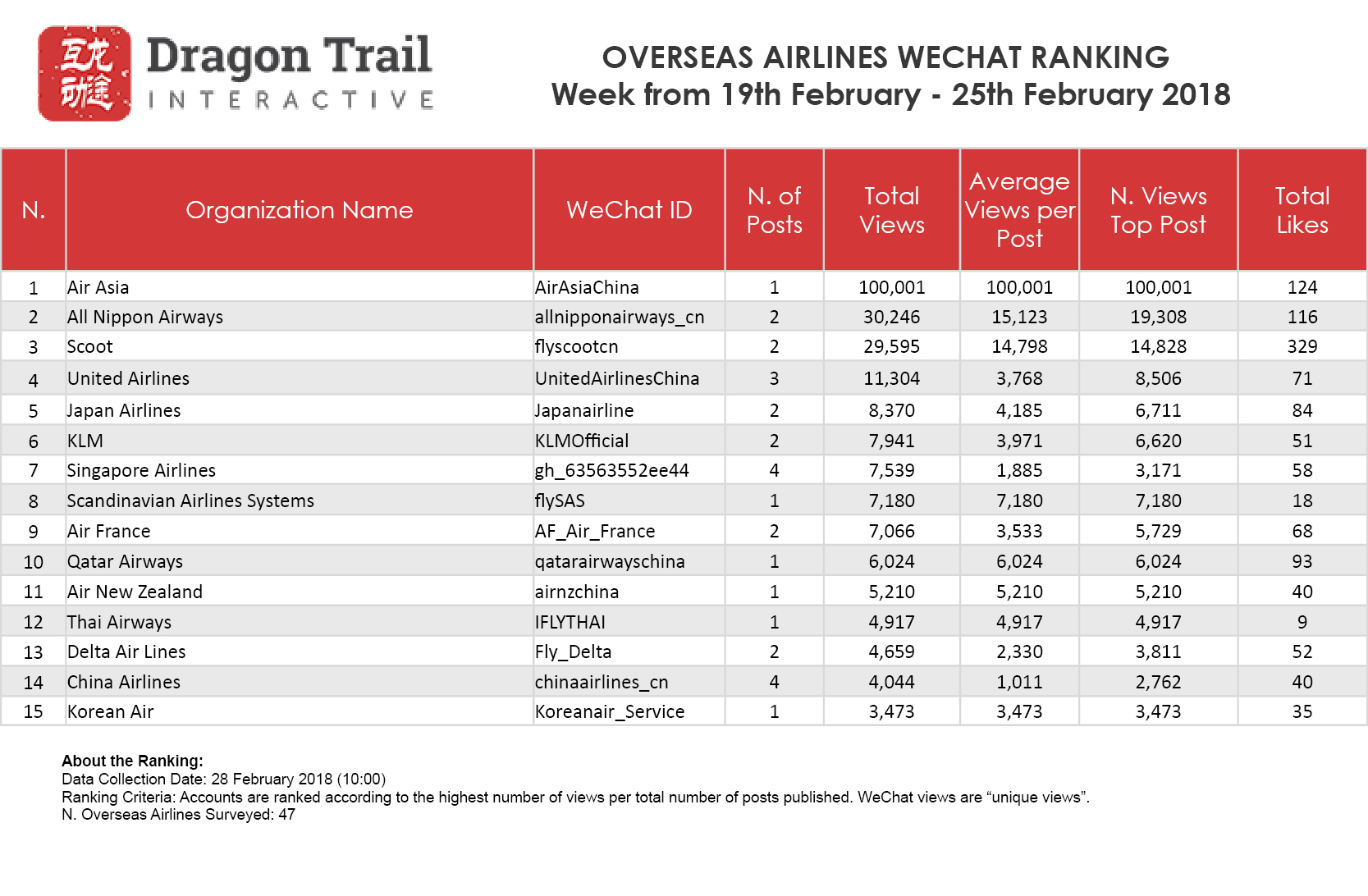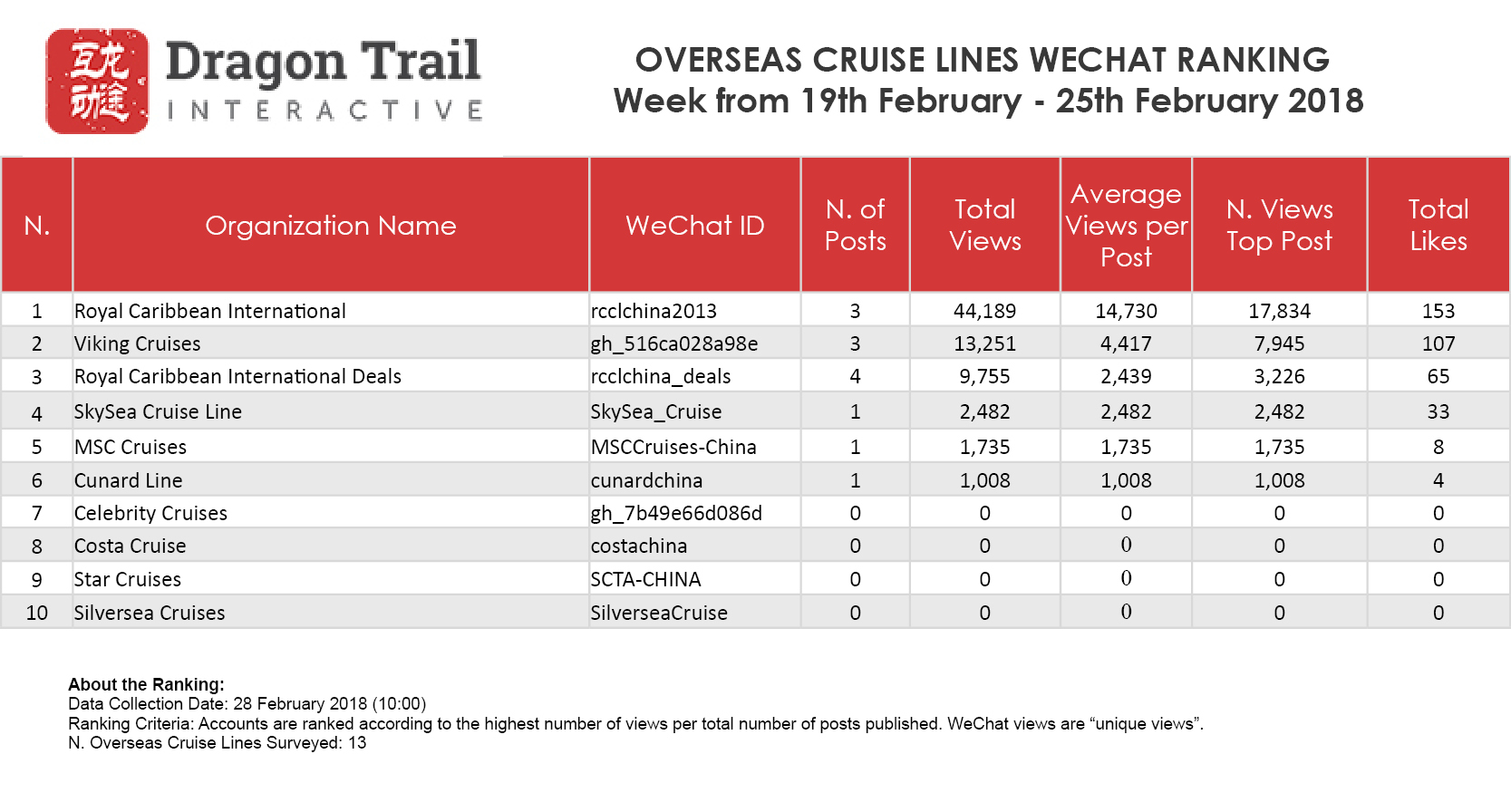 WeChat Weekly Ranking: Destinations, Airlines and Cruises – 19 February – 25 February 2018