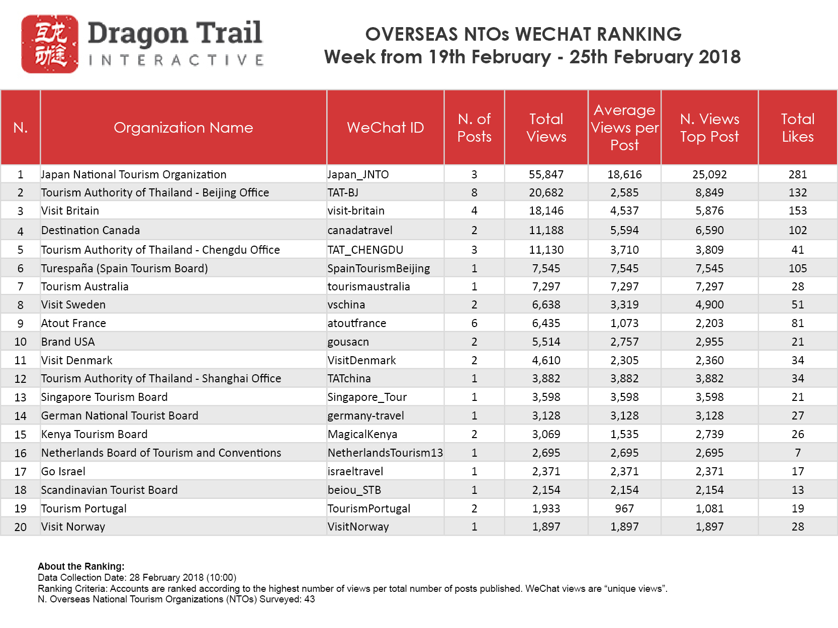 About the data: The data is jointly collected and compiled by Dragon Trail Interactive and Dingla, a B2B travel marketing platform assisting foreign organizations build long term travel trade relationships in China.