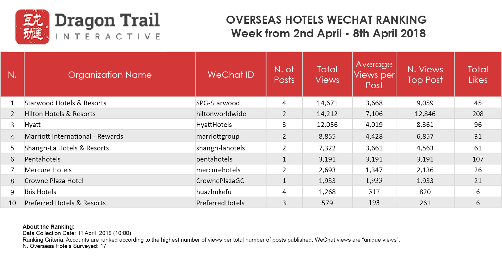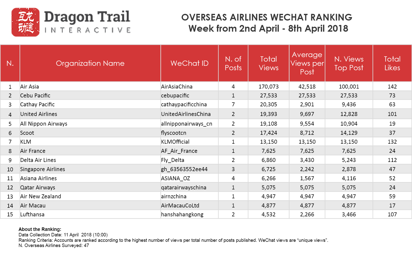 Ranking criteria: Accounts are ranked according to the highest number of views per total number of posts published. WeChat views are “unique views”.