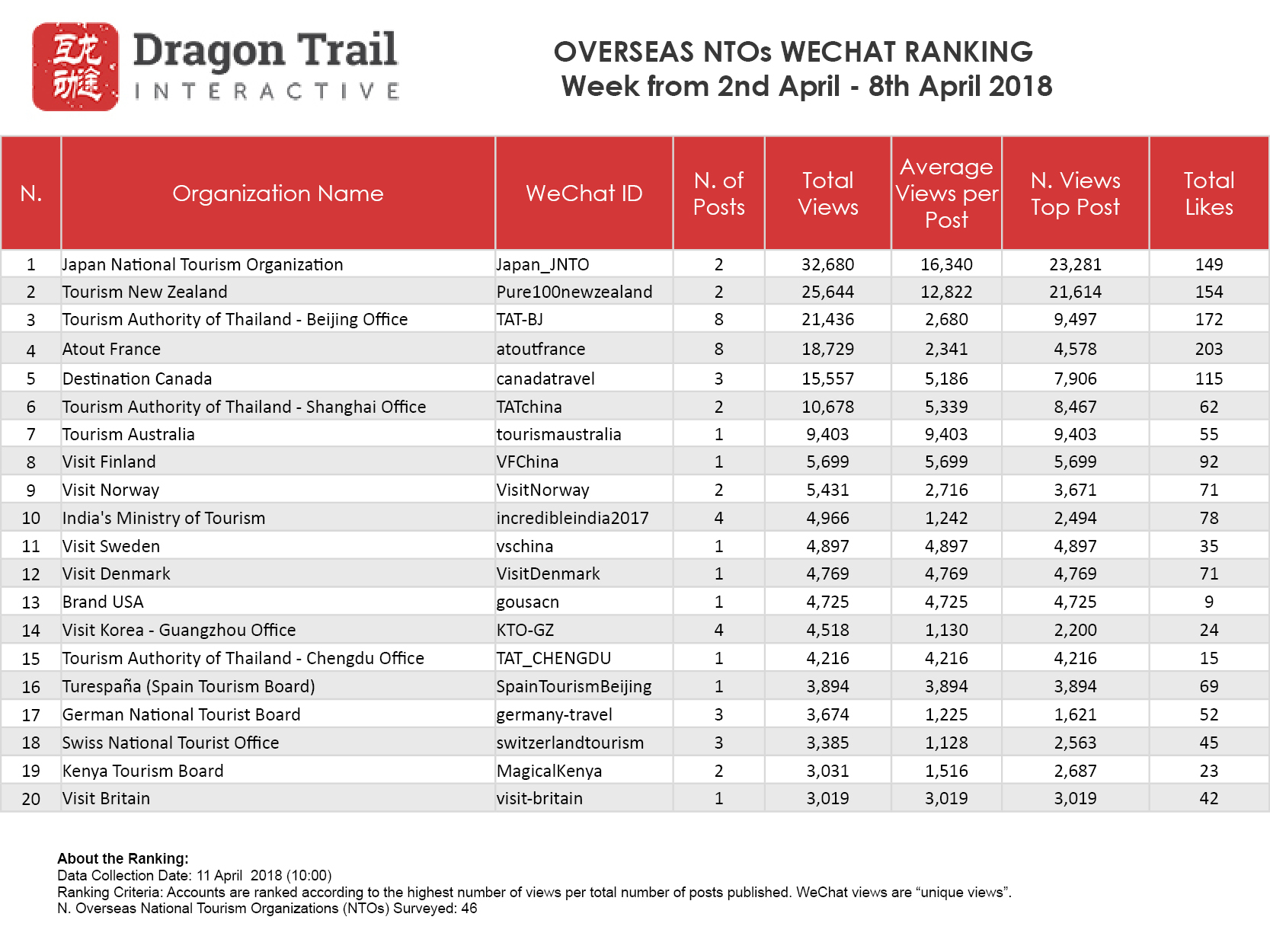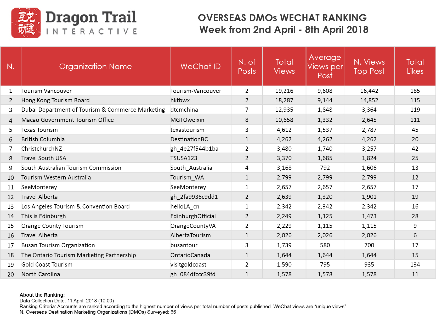 About the data: The data is jointly collected and compiled by Dragon Trail Interactive and Dingla, a B2B travel marketing platform assisting foreign organizations build long term travel trade relationships in China.