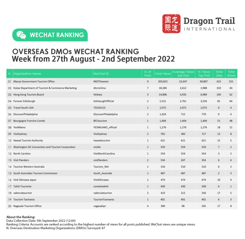 Ranking criteria: Accounts are ranked according to the highest number of views for all posts published. WeChat views are “unique views”.