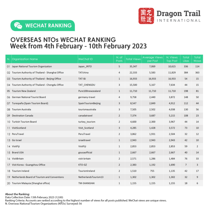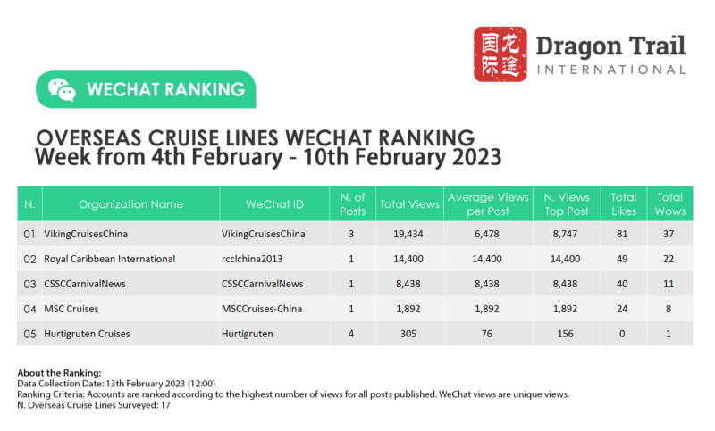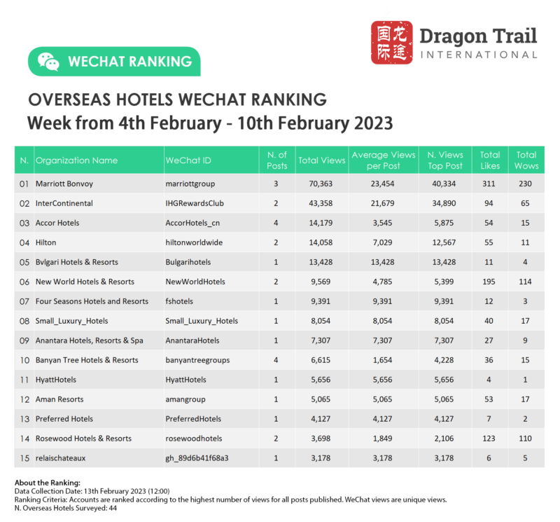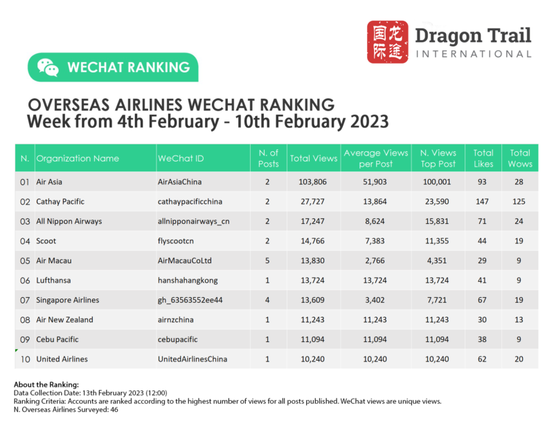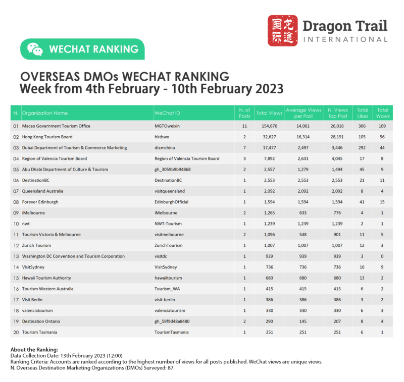 Ranking criteria: Accounts are ranked according to the highest number of views for all posts published. WeChat views are “unique views”.