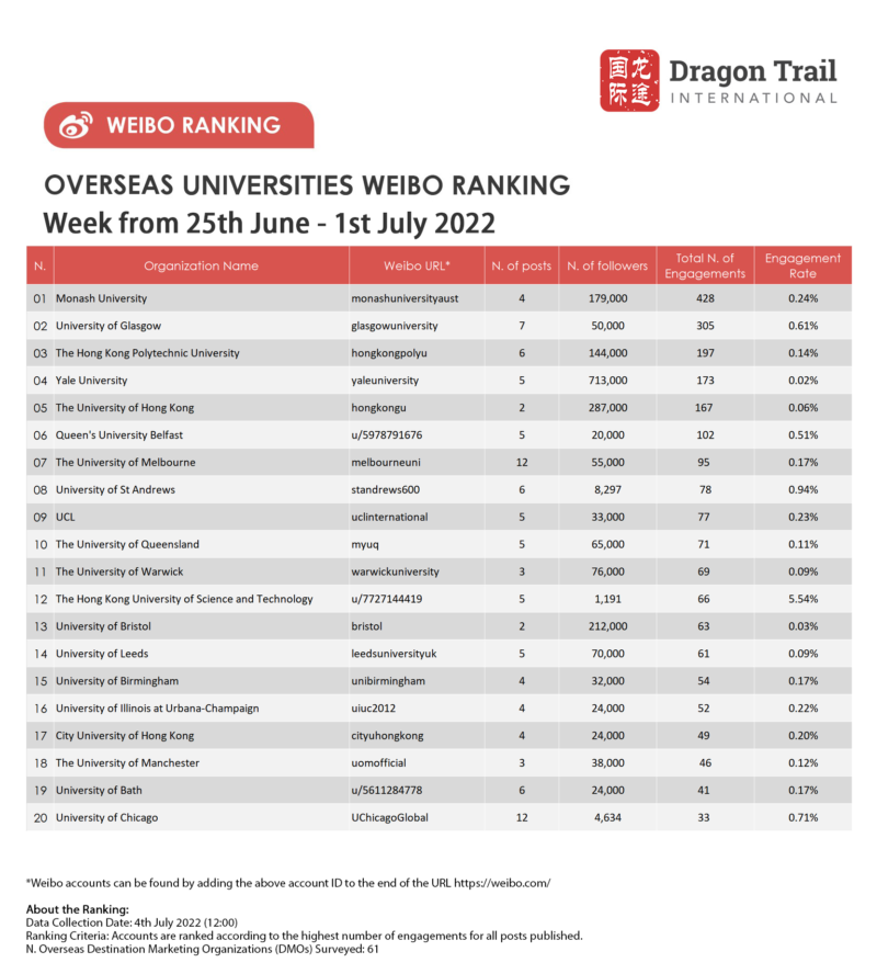 Weibo ranking criteria: Accounts are ranked according to the highest number of engagements for all posts published.
