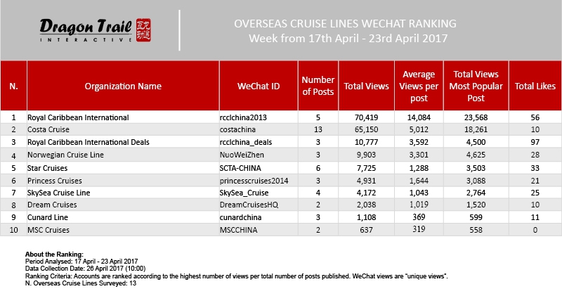 Ranking criteria: Accounts are ranked according to the highest number of views per total number of posts published. WeChat views are “unique views”.