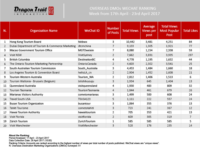 The data is jointly collected and compiled by Dragon Trail Interactive and Dingla, a B2B travel marketing platform assisting foreign organizations build long term travel trade relationships in China.