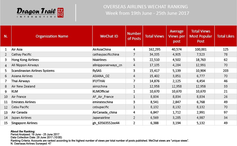 Ranking criteria: Accounts are ranked according to the highest number of views per total number of posts published. WeChat views are “unique views”.