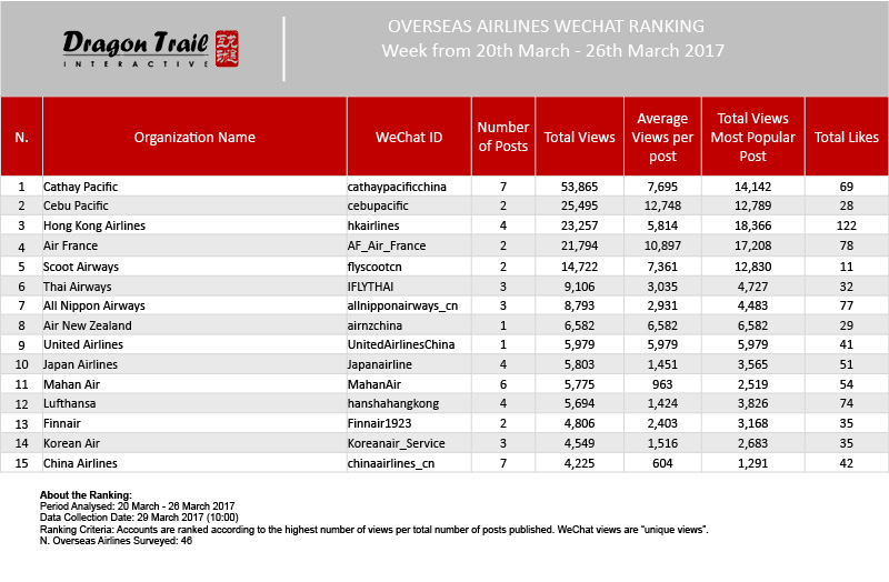 Ranking criteria: Accounts are ranked according to the highest number of views per total number of posts published. WeChat views are “unique views”.