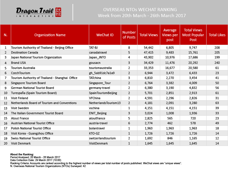 About the data: The data is jointly collected and compiled by Dragon Trail Interactive and Dingla, a B2B travel marketing platform assisting foreign organizations build long term travel trade relationships in China.