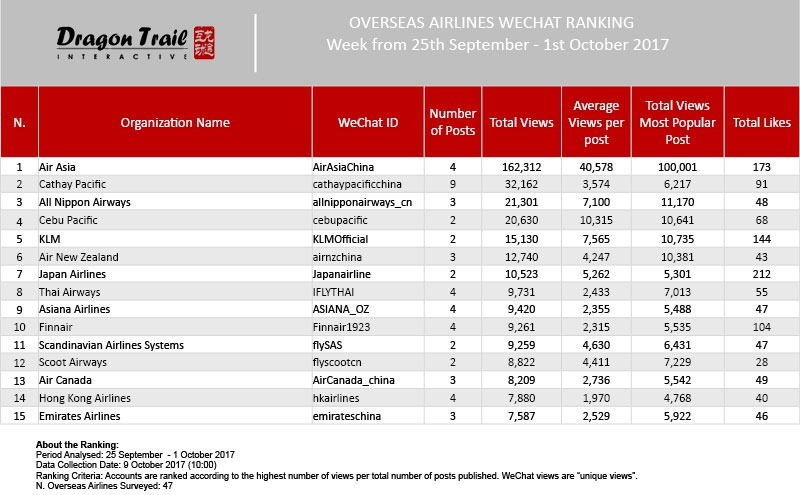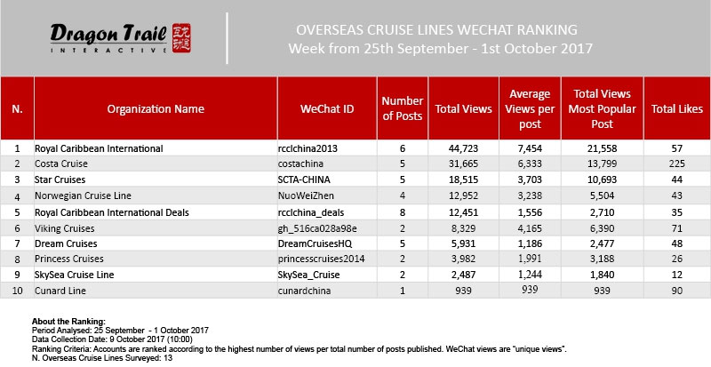 Ranking criteria: Accounts are ranked according to the highest number of views per total number of posts published. WeChat views are “unique views”.