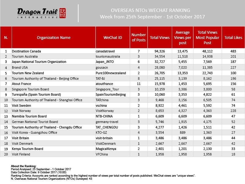 The data is jointly collected and compiled by Dragon Trail Interactive and Dingla, a B2B travel marketing platform assisting foreign organizations build long term travel trade relationships in China.
