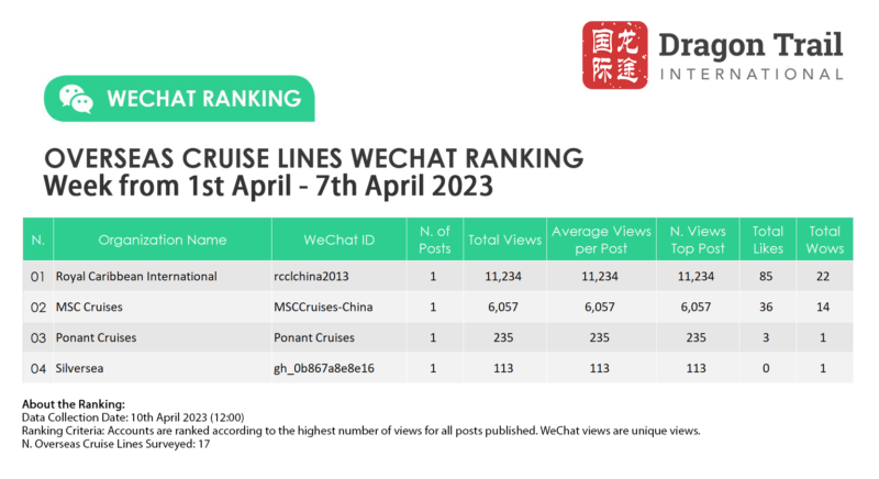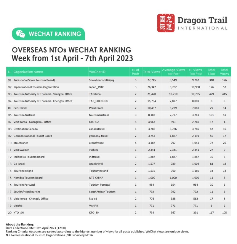 WeChat Weekly Rankings: Destinations, Airlines, Cruises, Attractions and Hotels – 1-7 April 2023