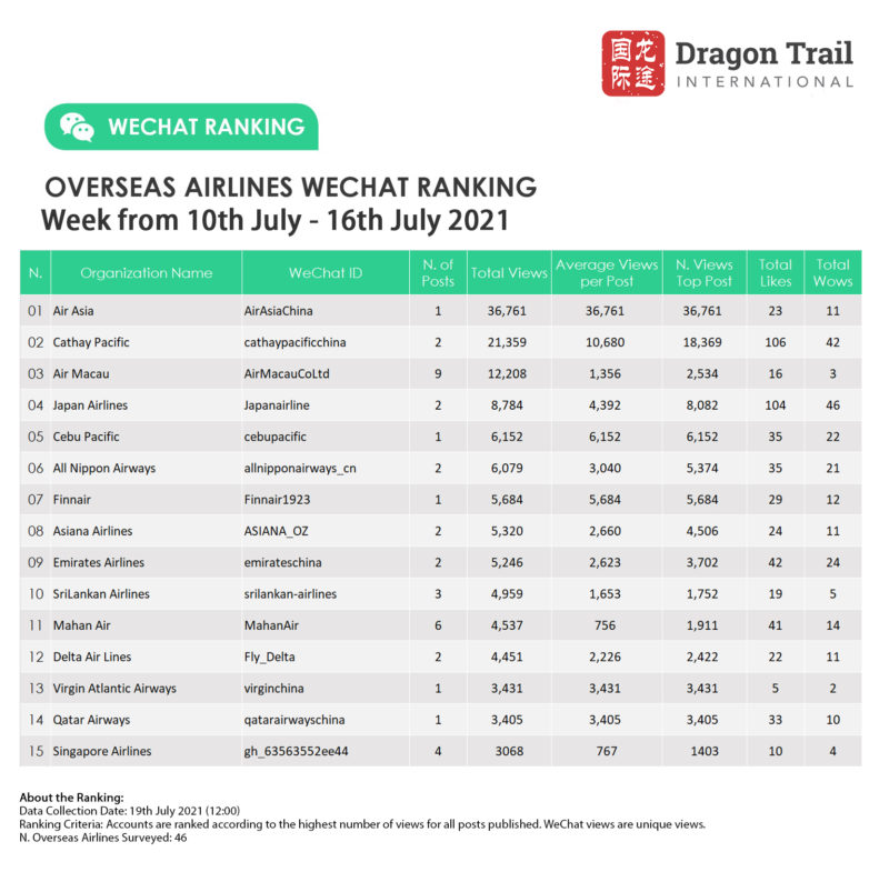 Ranking criteria: Accounts are ranked according to the highest number of views for all posts published. WeChat views are “unique views”.